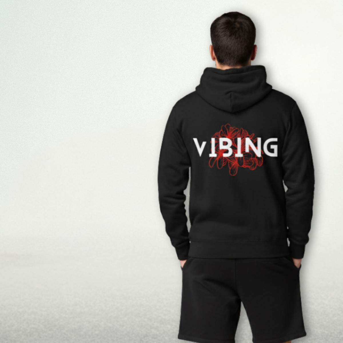 Solitude Graphic Hoodie | Red & Black Oversized Cotton Blend Sweatshirt